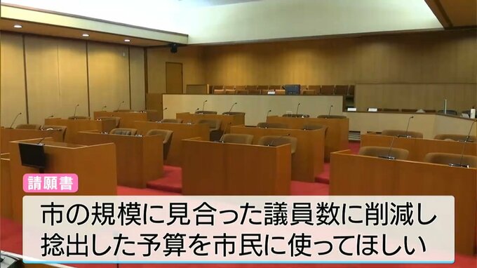 請願書では、市の「財政健全化プラン」による予算削減により、イベントなど文化活動の縮小や、高齢者や障害者の福祉に関するしわ寄せがあると指摘。市の規模に見合った議員数に削減して捻出した予算を、市民のために使ってほしいと要望しています。