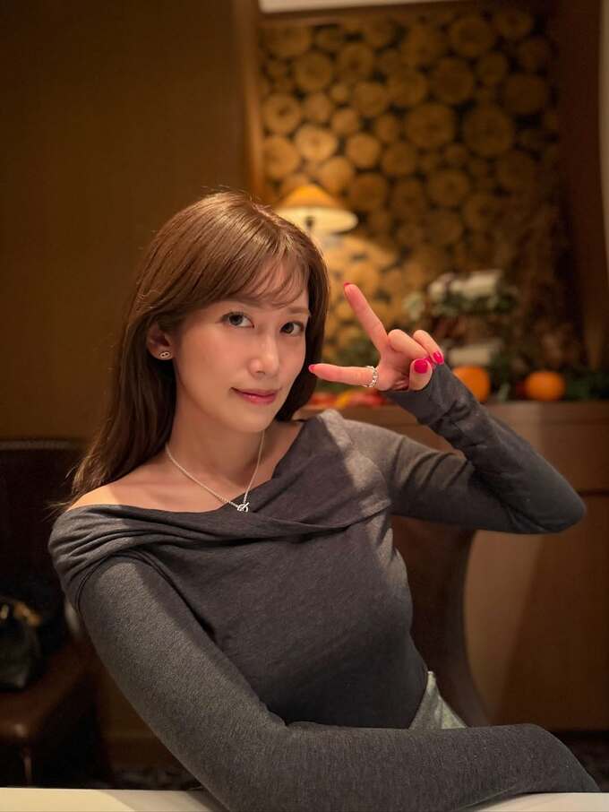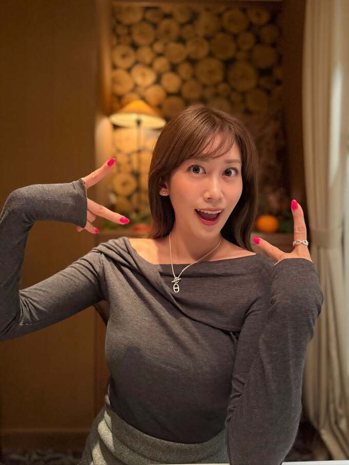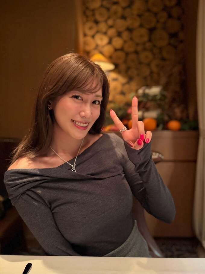 オフショルダーのトップスに身を包み、カメラの前で様々なピースサインのポーズを決める画像を投稿しています。