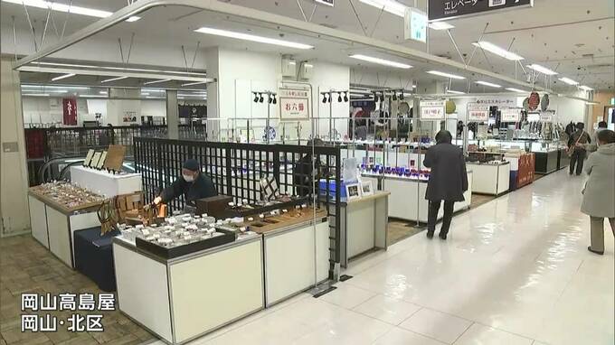 岡山高島屋で開かれている「日本の伝統展」では、全国各地の職人の手仕事を間近に見ることができ、1000点以上の伝統工芸品が販売されています。