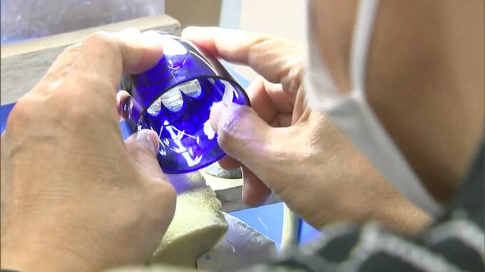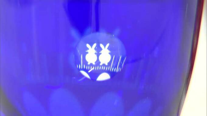 ガラスの中の満月に浮かび上がるのは来年の干支「ウサギ」。江戸切子の繊細な技が施されています。