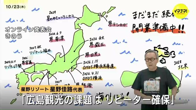来年、広島県内で初めて開業する星野リゾートの温泉施設について、星野代表は中四国の観光客にリピーターになってほしいと話しました。
