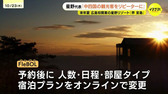 星野リゾートは来年夏、宮島の対岸の廿日市市宮島口に地上12階建ての温泉施設「界宮島」を開業します。星野代表は、インバウンドだけでなく中四国の観光客を中心としたブランドリピーターを目指すと話しました。