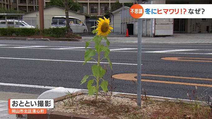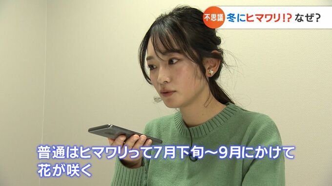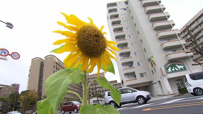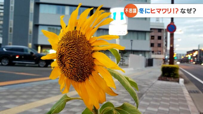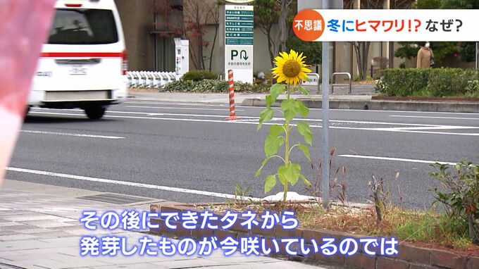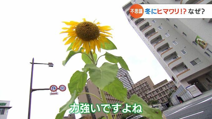 「普通はヒマワリって、7月下旬から9月にかけて花が咲くと思うんですけれども、その後にできた『タネ』から発芽したものが、今咲いたんじゃないかなと思うんですよ」