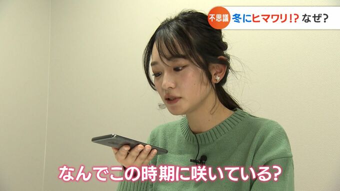 「みなさん、もう12月。冬だというのにこちら、見てください。ヒマワリが咲いてるんです」