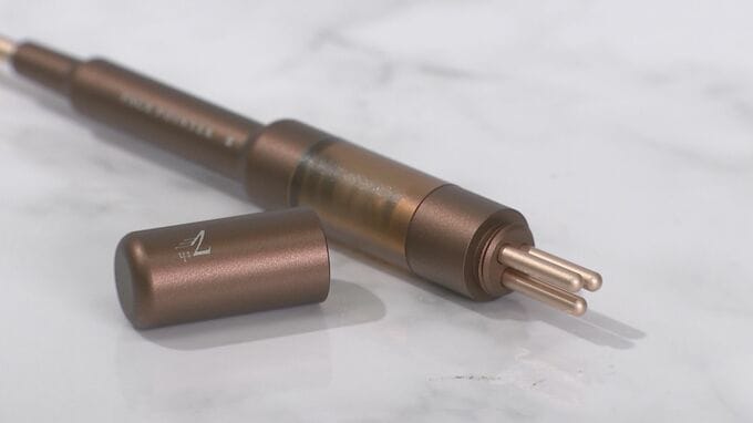 また、ペンの反対側は3本のロッドがひとつになっていて、痛みに敏感な部分でも均一にリズミカルに圧をかけることもできます。