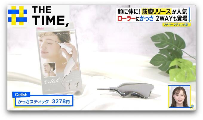 「かっさスティック」(Cellsh/3278円)は、筋膜リリースをするフェイスポインターの反対側が、リンパを流す”かっさ”プレートになった2WAYタイプ。