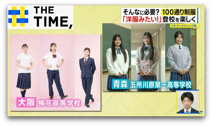 大阪の『梅花高等学校』(豊中市)や青森の『五所川原第一高等学校』(五所川原市)でも2026年4月から制服をリニューアルし、100通り以上のコーディネートが出来るようになるといいます。
