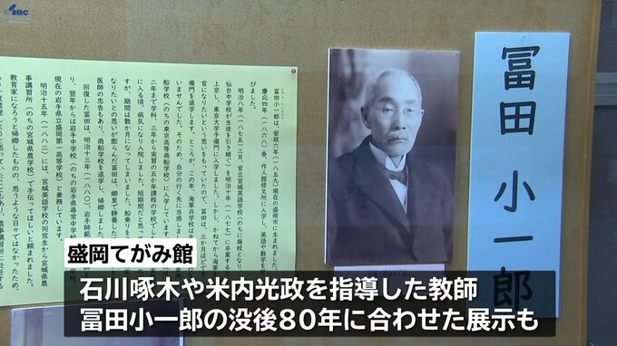 また館内では、石川啄木や米内光政を指導した教師、冨田小一郎の没後80年にあわせた展示も行われています。