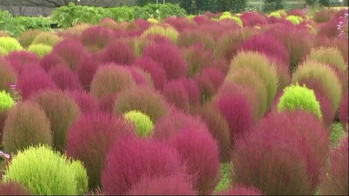 熊本県南阿蘇村で5000株のコキアが色づき、見ごろをむかえています。南阿蘇の雄大な景色の中で約5200株のコキアが見ごろをむかえているのは、道の駅「あそ望の郷くぎの」です。道の駅では2年前からコキアを植え始…