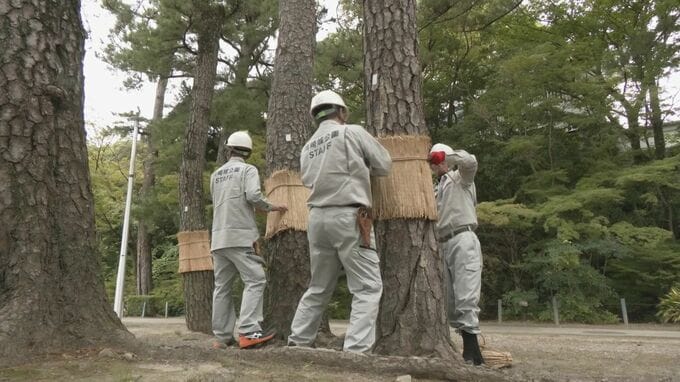 本格的な冬の到来を前に害虫から松の木を守る「こも巻き」が愛知県岡崎市で行われました。