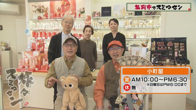 続いては化粧品店へ。メンズ化粧品を物色しながら店内へ。お店の方々と記念撮影をします。