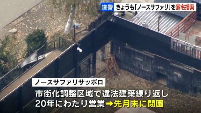 違法建築物の問題で9月末に閉園した札幌市南区の「ノースサファリサッポロ」に北海道警は、23日に続いて24日も家宅捜索に入っています。