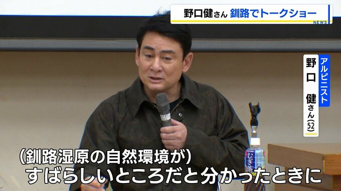 釧路湿原周辺のメガソーラー建設が問題となっている北海道釧路市で、建設反対を訴えるアルピニストの野口健さんがトークショーを行いました。