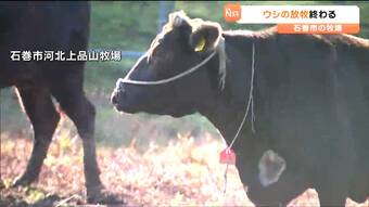 一足早い冬支度です。山の頂上に開設されている石巻市の牧場で、5か月以上、過ごしてきたウシたちが10月24日、放牧を終えて山を下りました。