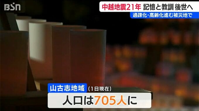 地震から21年が経ち、山古志地域の人口は705人まで減り、高齢化も加速しました。