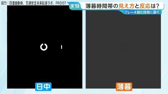 薄暮時間帯 ブレーキを踏む時間に遅れ