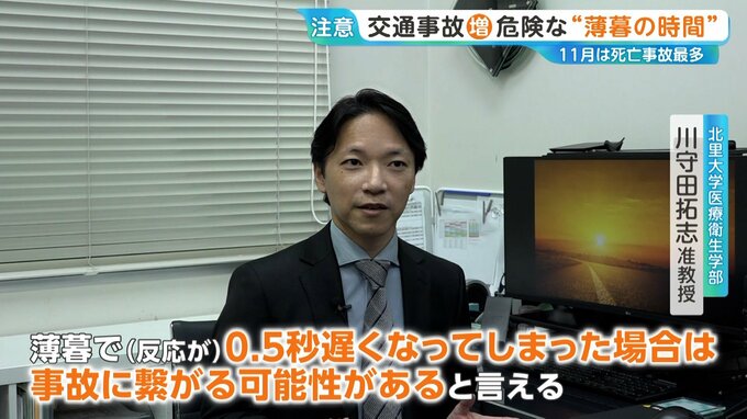 この時期は、見えづらくなる時間帯が帰宅の時間帯に重なるために事故が増えてしまいます。