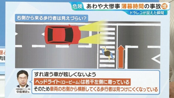 そのため車両の右側から横断してくる歩行者や自転車は、見つけにくくなっているのです。