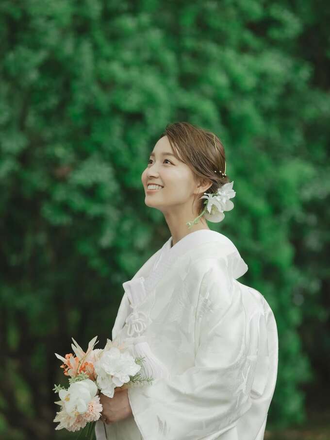 世界遺産「古都京都の文化財」の1つに登録されている、上賀茂神社で結婚式の前撮りを行ったということで、世界遺産検定1級の資格を持つ間瀬さんは、「当日は晴れて、雨露が光る境内がとっても綺麗でした」と感想を記しています。