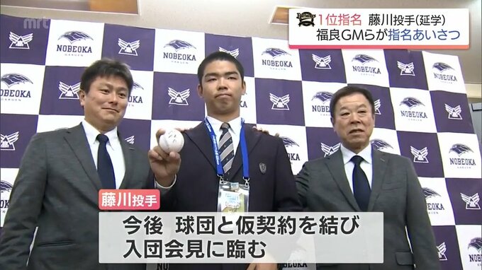 23日のドラフト会議でオリックス・バファローズから1位指名を受けた延岡学園高校の藤川敦也投手。24日は、福良淳一GМら球団関係者が指名あいさつに訪れました。ドラフト会議から一夜明け、少し緊張した様子の藤川…