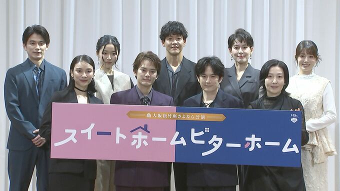松竹創業百三十周年『スイートホーム ビターホーム』の取材会が行われ、俳優の中山優馬さん、秋元才加さん、藤野涼子さん、井上拓哉さん、舞羽美海さん、瀬戸カトリーヌさん、駿河太郎さん、佐藤アツヒロさん、演出の藤井清美さんが登壇しました。