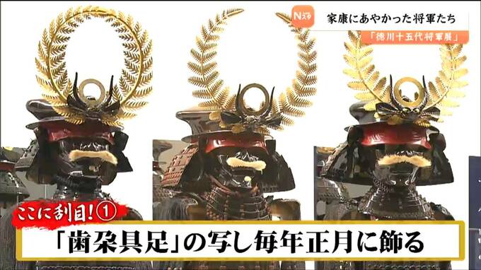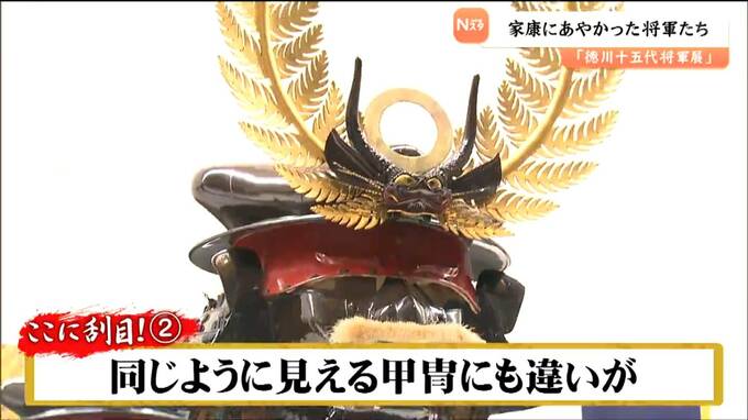 仙台市博物館で開催中の特別展「徳川十五代将軍展」。初代から十五代までが勢ぞろいしている甲冑について見どころをお伝えします。