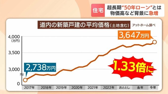 建築資材の高騰などで、右肩上がりが続いている北海道内の新築戸建ての価格。
