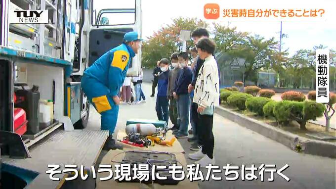 きょうはレスキュー車なども展示され、もしもの時の活用方法が紹介されました。
