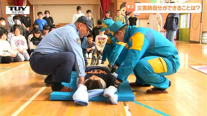 児童は「そのまま持つよりも支えがあって持ちやすい」「担架に乗った事ないが椅子でも安定感があった」「持たれたのが初めてなので不思議な感覚」「簡単にできた。将来は警察官をやってみたい」