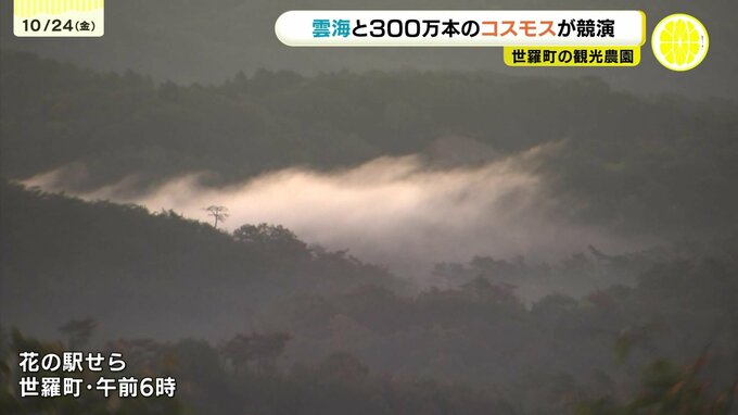 広島県世羅町の観光農園では、雲海とコスモスとの“共演”が秋の深まりを感じさせています。