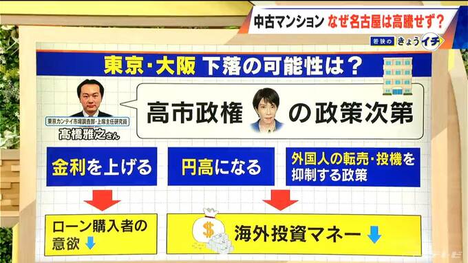 さらには「外国人のマンションの転売や投機を抑制する政策、税金のルールなどを導入」。これによって、海外の投資マネーが少なくなり、マンション価格が下がる可能性もあるという分析です。