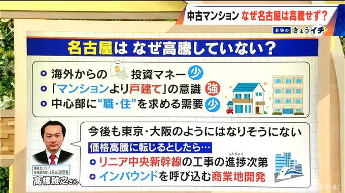 東京と大阪の中古マンション価格は上がっていますが、名古屋はあまり上がっていません。これはなぜなのか。