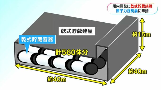 計画によりますと、1号機と2号機の東側に、縦、横40メートル、高さ15メートルの鉄筋コンクリートの建屋を新設し、使用済み核燃料を560体分貯蔵できる容器を設置します。