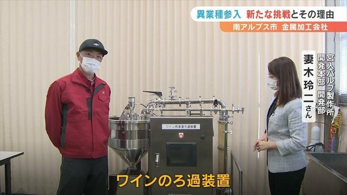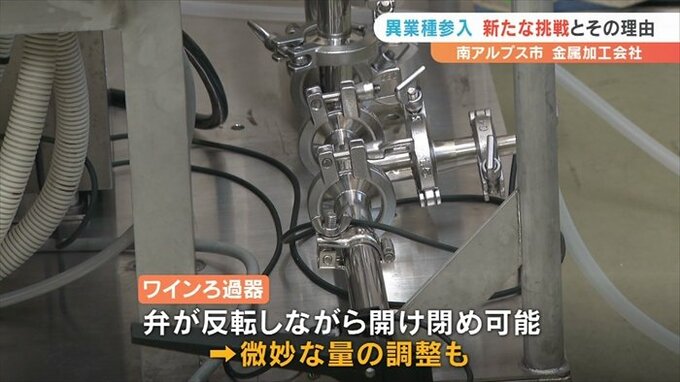 ワインの濾過装置です。バルブを作る技術を用いてワイン用にノズルを作りワインの装置に組み込んだ。