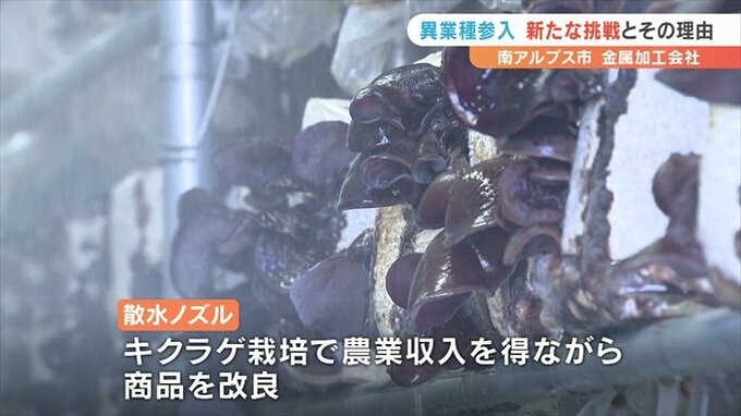 持っている技術を生かして何をやろうかと始めたのが散水ノズル。散水ノズルを農業に生かせないかと思いキクラゲにたどり着いた。