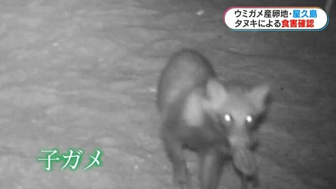 雑食のタヌキはもともと屋久島にはいない国内外来種で、30年ほど前に人の手で持ち込まれたとみられています。子ガメや卵を狙うのはノネコやカラスもいますが、近年タヌキの被害が増えているといいます。
