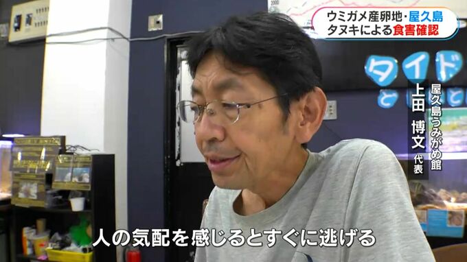 (日本ウミガメ協議会・屋久島支部 大野睦理事)「去年、永田浜でウミガメの孵化脱出が900巣確認された。(調査から)そのうちタヌキの痕跡があったのが、(調査で)約5%と推測する。関係機関と協議しながら(対策に)取り組んで行きたい」
