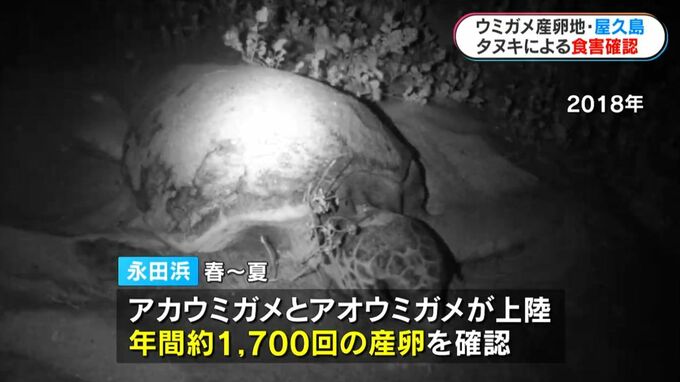 世界有数のウミガメの産卵地屋久島で、外来種のタヌキによる子ガメへの食害が確認され、環境省などが調査しています。