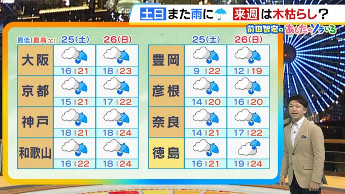 10月25日(土)の近畿地方は、南から天気が下り坂。再び広い範囲で秋の雨が降りだす見込みです。 南に離れていた秋雨前線が、西日本付近へと北上して近づくでしょう。26日にかけては前線上に低気圧も発生す…