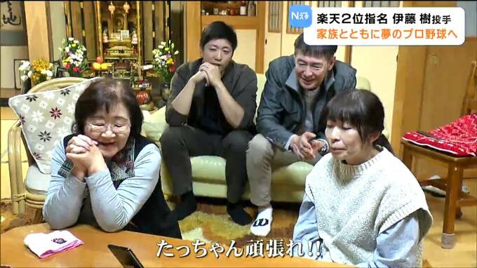 楽天イーグルスから2位指名を受けた仙台育英学園高校出身の伊藤樹投手、ふるさと秋田では家族も歓喜の瞬間を迎えました。