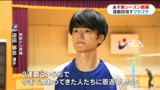 SVリーグの長野から移籍してきた迫田郭志選手は指宿市出身。鹿児島商業時代に全国大会準優勝を経験した選手で、高校以来の鹿児島でのプレーに意気込みます。