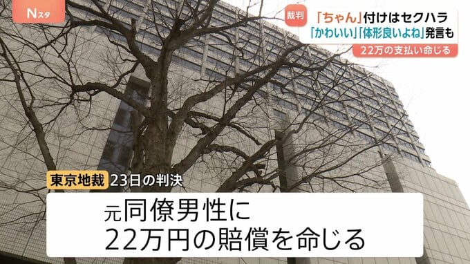 元同僚の男性からセクハラを受けていたとして、女性が賠償を求めていた裁判。名前を「ちゃん」付けで呼ぶことなどがセクハラにあたるとして、東京地裁が賠償を命じました。佐川急便の営業所に勤めていた40代の女性…