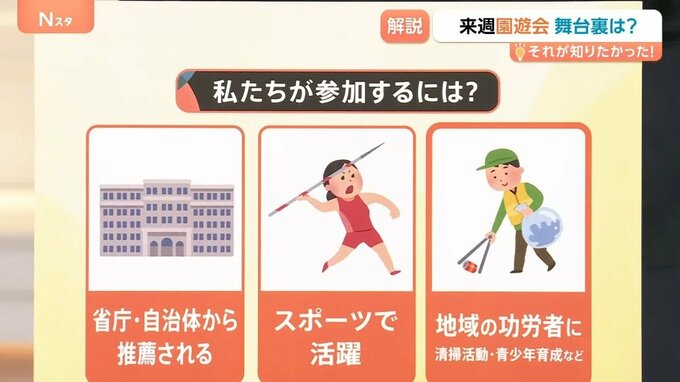 たとえば▼省庁や自治体から推薦されれば、招待者に名前が挙がることはあり得ます。また、ハードルが高いですが▼スポーツで活躍すること。
