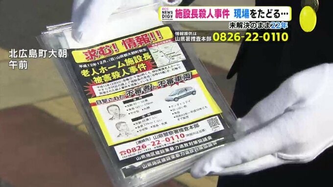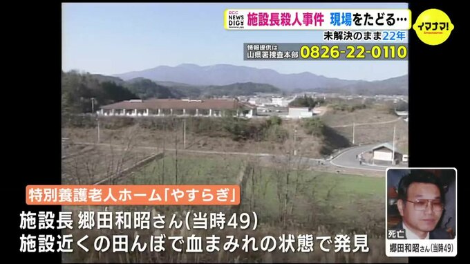 22年前の12月9日の朝、特別養護老人ホーム「やすらぎ」の施設長だった郷田和昭さん(当時49)が、施設近くの田んぼで血まみれの状態で倒れているのを近所の住民が発見しました。