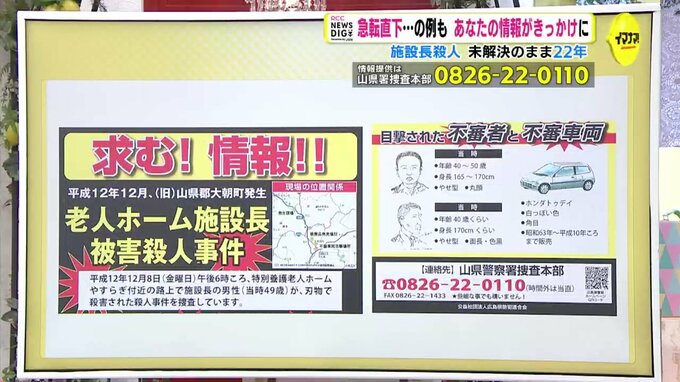 何が言いたいかというと、もし、何か思い当たることがあれば、「いまさら、こんなことを話してもしょうがない…」と思わずに、警察に情報を寄せてほしいということ。それをきっかけに、警察がこれまで捜査してきた点と点が結び付いて未解決事件が進展する可能性は、大いにあるということです。時間がたったからこそ、話せるというケースもあると思います。