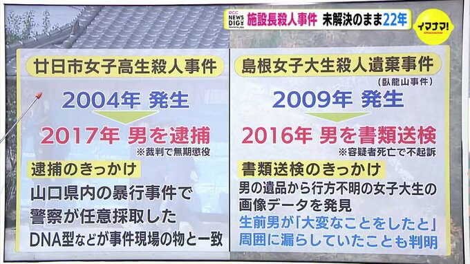 2009年、北広島町の臥竜山で女子大学生の遺体が見つかった事件では、すでに死亡していた男を7年後に書類送検しました。この事件では、実は男が生前、周囲に「大変なことをした」などと漏らしていたことがわかっています。(※容疑者死亡で不起訴)