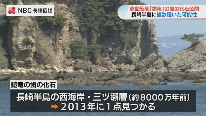 長崎市の海岸で、約8000万年前に生息したとみられる恐竜の歯の化石が新たに見つかり、24日から公開されています。