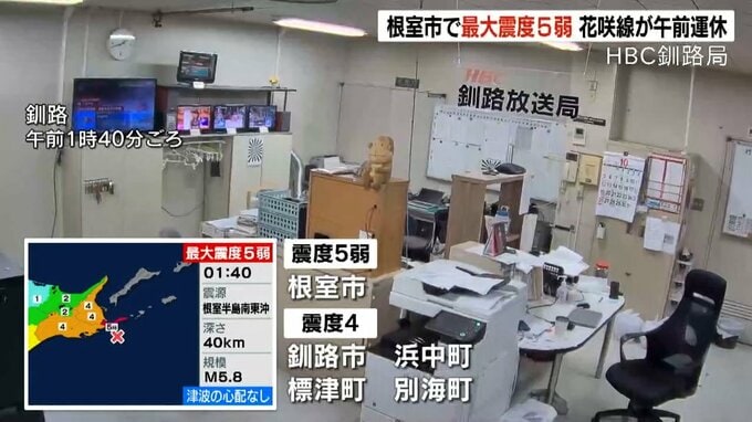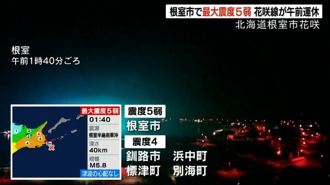 25日未明、北海道根室市で、最大震度5弱を観測する強い地震がありました。JR花咲線は安全確認のため、午前の運転を見合わせました。