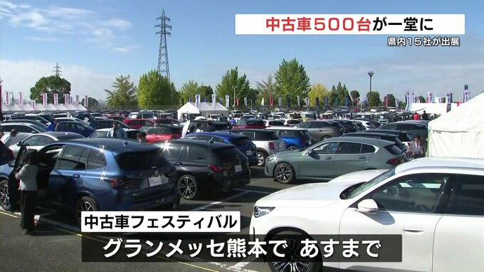 25日、530台の中古車を展示・販売する「中古車フェスティバル」が、熊本県益城町のグランメッセ熊本で始まりました。この「中古車フェスティバル」は 県内の新車ディーラーが年に2回開催しているもので、今回は15…