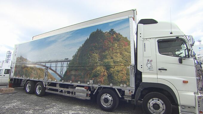 秋の観光地をPRするラッピングトラックが24日、福島市で披露されました。福島駅前で24日、披露されたのは、磐梯吾妻スカイラインの紅葉の名所つばくろ谷がデザインされたトラックです。このラッピングトラックは、…